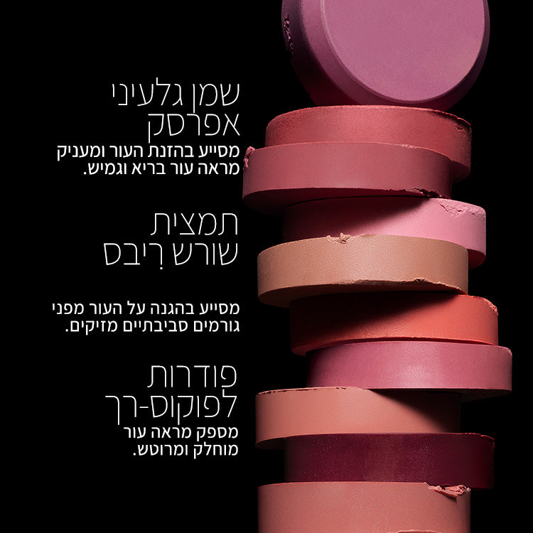 מרקם ההופך מקרם-לפודרה, נמרח בקלות ומספק גימור פוקוס רך שמטשטש ומשפר את מראה העור