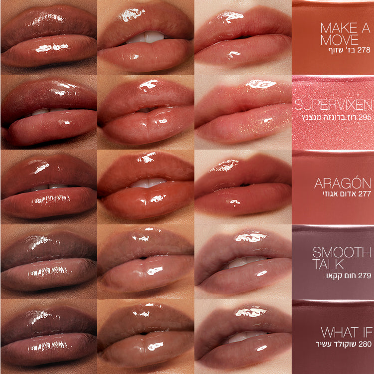 •השפתיים נראות מלאות יותר עם פורמולה קלת משקל שמספקת ברק עוצמתי בגימור דמוי מראה וגלימה נוחה של גוון שקפקף