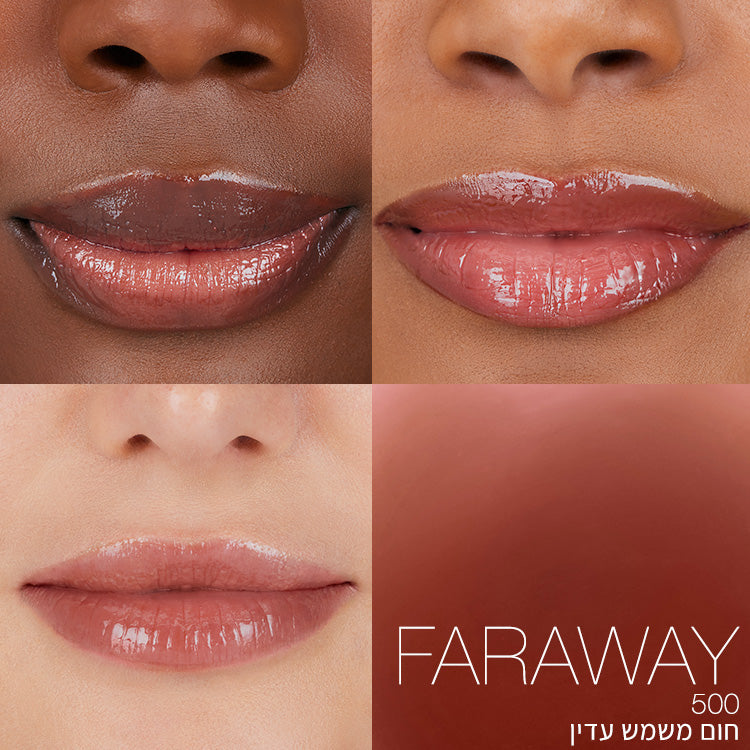 גלוס חושני בפורמולת ג'ל-שמן המעניק לחות לאורך זמן וברק שקוף